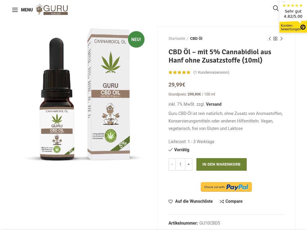 Guru ist eine der bekanntesten Marken wenn es um Kokosöl und Kokos Pflegeprodukte geht. Regelmäßiger Topseller bei Amazon in der Kategorie Öl und sehr viele Kunden kaufen auch als Shop-Kunden. Das Bestellsystem ist einfach und führt nur zu sehr wenigen Bestellabbrüchen. Kokosöl, MCT Öl und Pflegeprodukte bestechen durch ihre Qualität und den Preis. Deshalb ist Guru so beliebt bei seinen Kunden.
