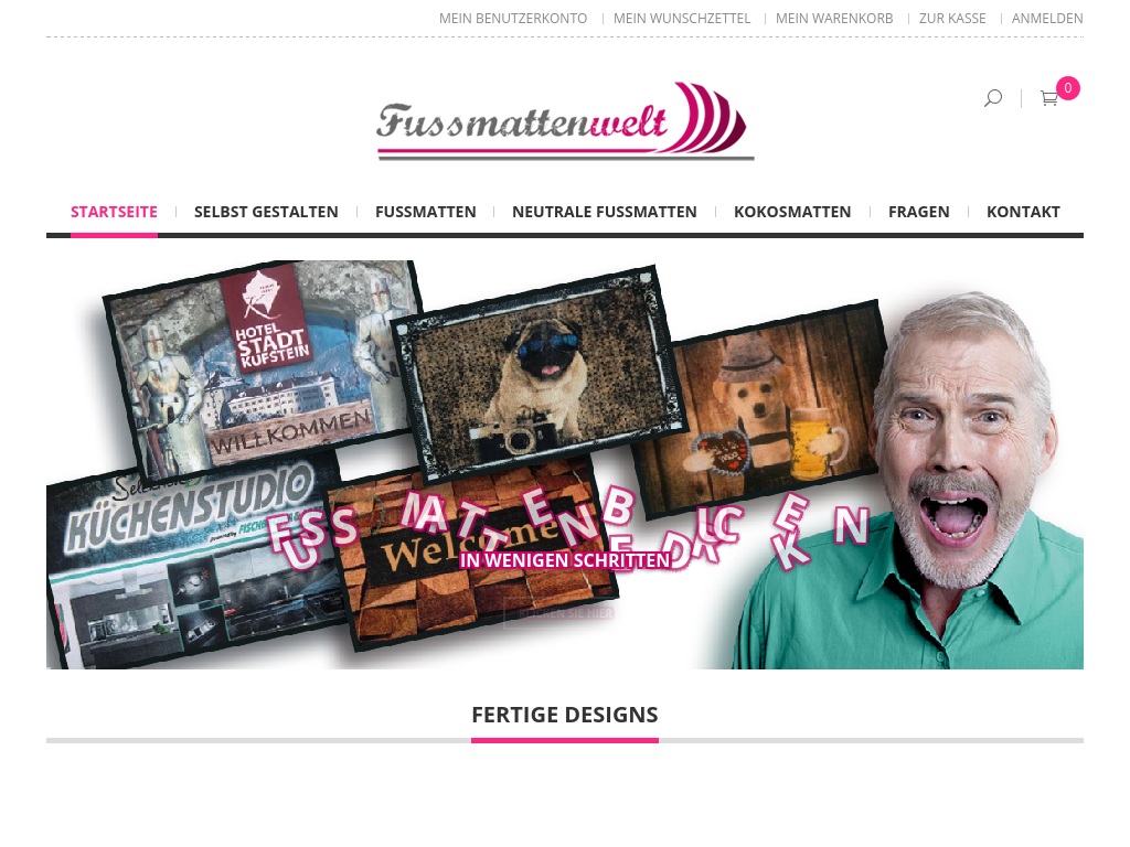 Fussmatten-welt.de – Jetzt neu, individuelle Fussmatten in 64 Farben zum selbst gestalten. Dieses Partnerprogramm bzw. die Website bietet einen Konfigurator für individuelle Fussmatten zum selbst gestalten. Jede Bestellung wird individuell angefertigt und kann per Vorkasse, PayPal oder Rechnung bezahlt werden. Überzeugen Sie sich jetzt vom unserem besonderen Angebot und dem individuellen Fussmatten-Konfigurator in unserem Shop auf fussmatten-welt.de.