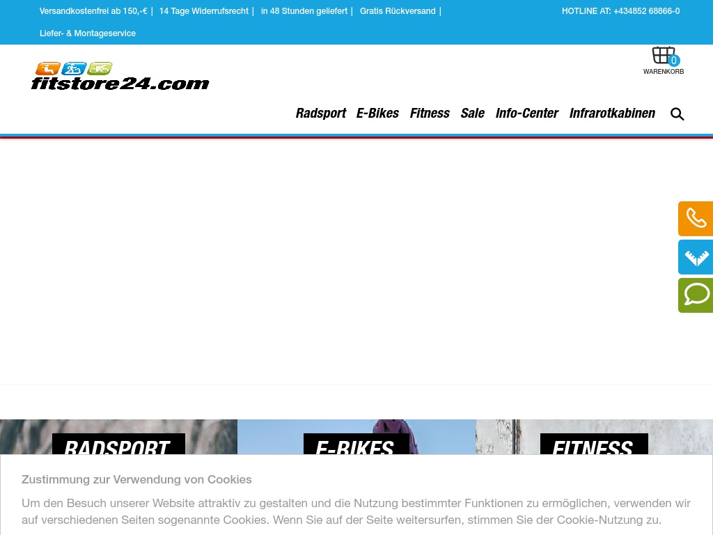 Neben unserem Onlineshop stehen wir Ihnen an unseren drei Standorten in Wien, Lienz und Villach persönlich zur Verfügung. Unseren Kunden aus Österreich und Deutschland steht zudem unsere Hotline offen, um telefonisch von unserer Erfahrung mit Sport- und Fitnessgeräten zu profitieren. Seit 1996 werden wir mit einem professionellen Service in Beratung und Verkauf verbunden, der auch Ihre Begeisterung für den Radsport oder zeitgemäße Fitnessgeräte neu entfachen möchte. Faire Preise und Vorschläge für die Finanzierung Ihrer Fahrräder, Infrarotkabinen & Co. erwarten Sie bei uns ebenfalls und runden unser Serviceangebot für Sie ab!