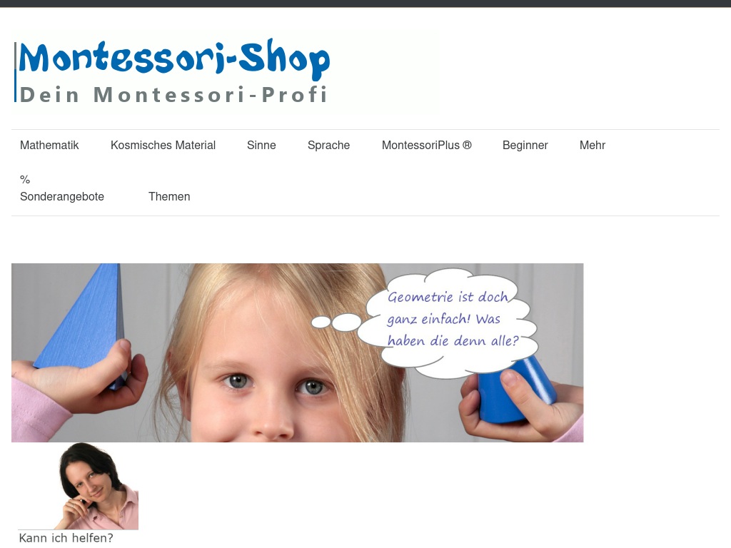 Seit 2004 der umfassende Spezial-Versand für Montessori-Material, Lernmaterial und Lernspielwaren. Der Montessori-First-Mover im Internet und seither inhabergeführt mit viel Herzblut und Erfahrung. Hauptzielgruppen sind Schulen, Kindergärten, Universitäten, Reha- und Therapieeinrichtungen. Die Zielgruppen sorgen für attraktive Warenkörbe und geringe Stornoquoten.
