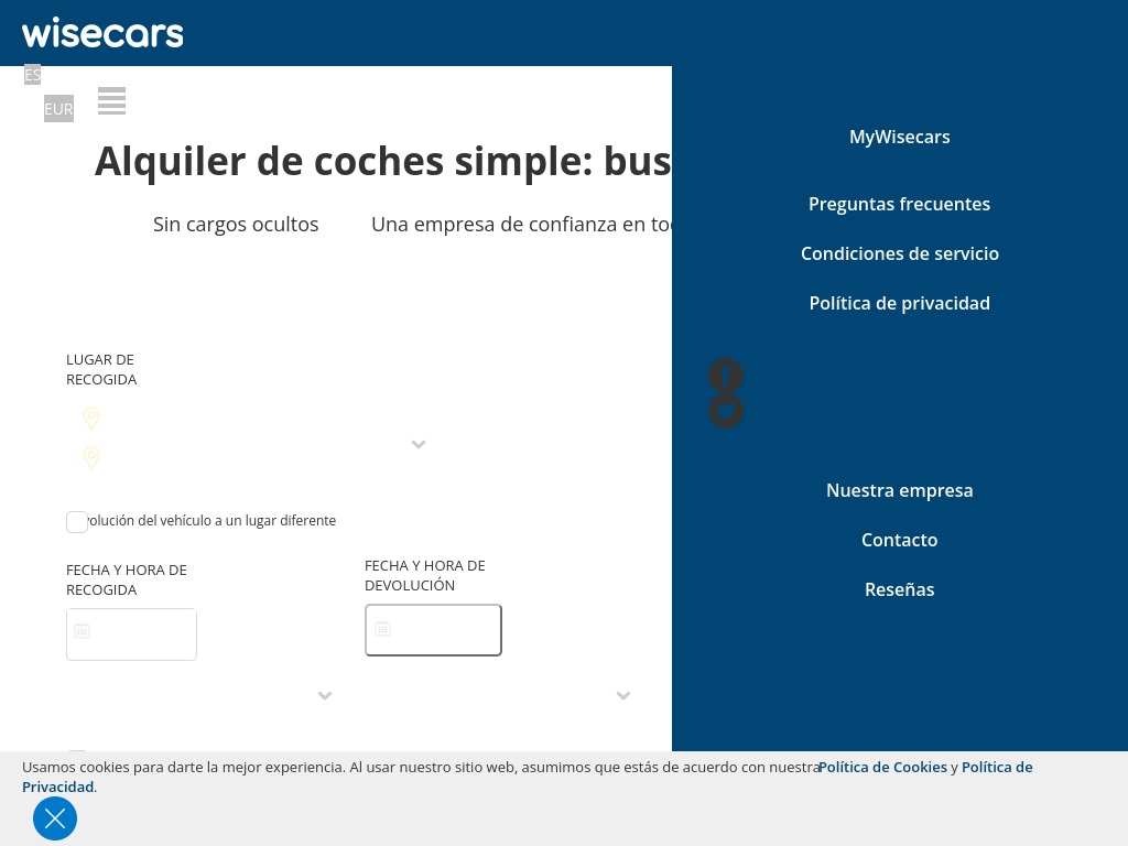 Wisecars.com es un buscador de coches de alquilar que ofrece la comparación de precios las empresas de alquiler de coches más reconocidas a nivel mundial: Hertz, AVIS, Alamo, Europcar, Budget, Dollar o Eneterprise entre otras.