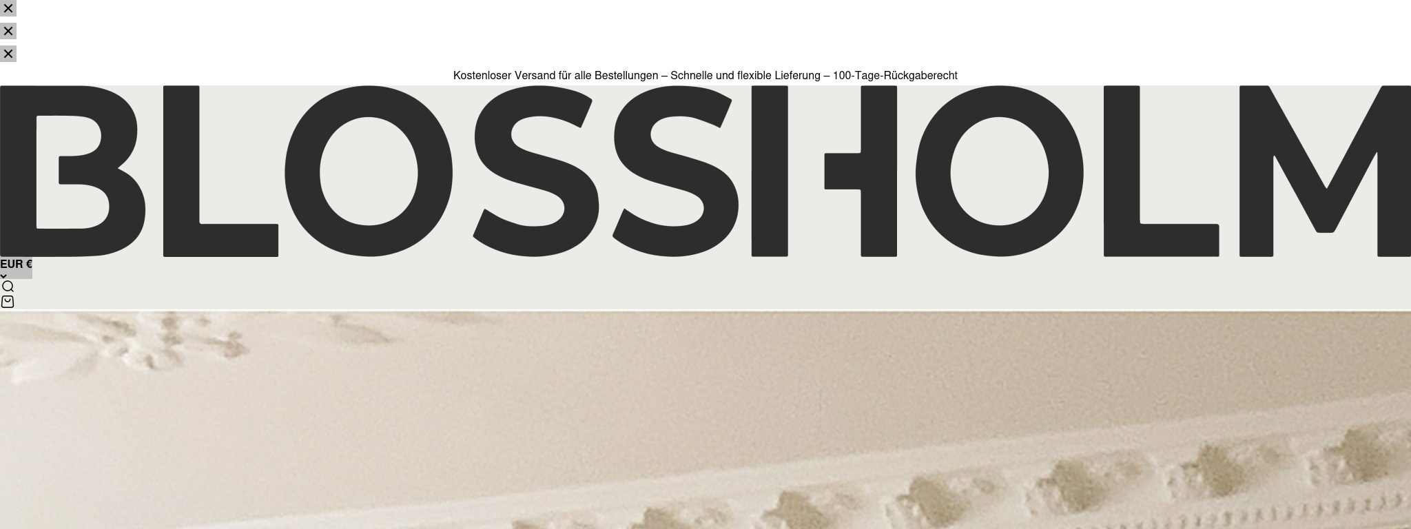 Bei BLOSSHOLM streben wir danach, ikonische Interieurs und unverwechselbare Designelemente für die moderne nordische Inneneinrichtung zu entwerfen. Sie brauchen nicht eine ganze Reihe von Möbeln, um Ihrem Zuhause einen einheitlichen Stil zu verleihen. Treten Sie ein in unser neues Universum aus stilvollen, soliden und großen Statement-Stücken und entdecken Sie, wie ein einziges Einrichtungselement in einem Raum genau die richtige Atmosphäre schaffen kann. Stilvoll. Geschmackvoll. Leicht und elegant.